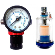 Манометр с регулятором давления воздуха, устанавливаемый на ручке пистолета.Технические характеристики:Регулируемое давление - 0,7 - 8,3 бар;Максимальное давление - до 9,7 бар;Выход воздуха - 1/4''...